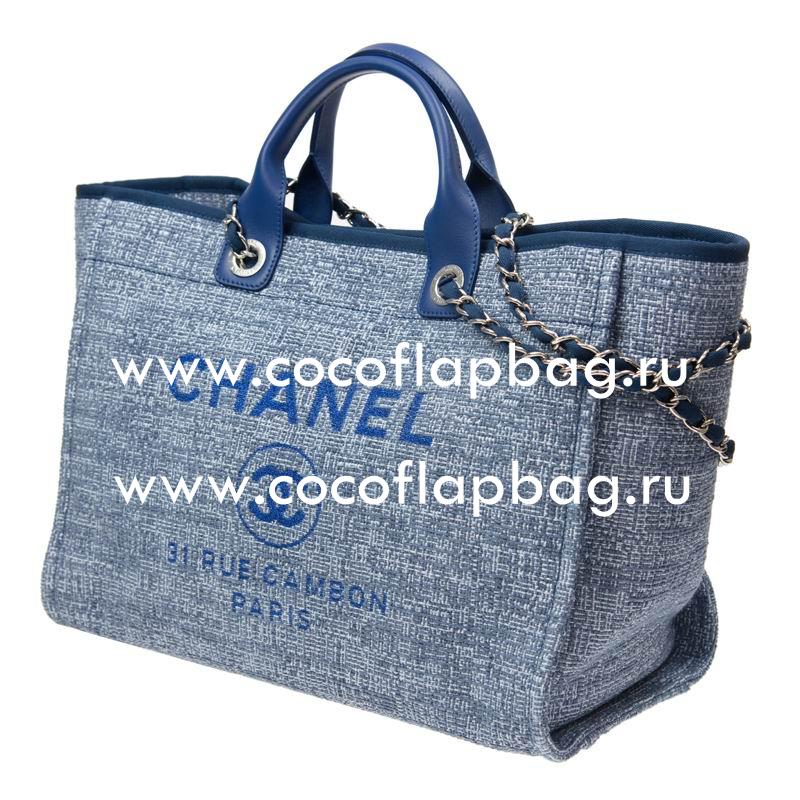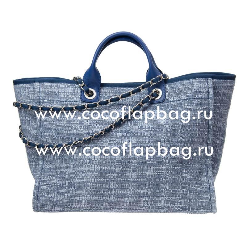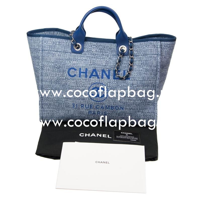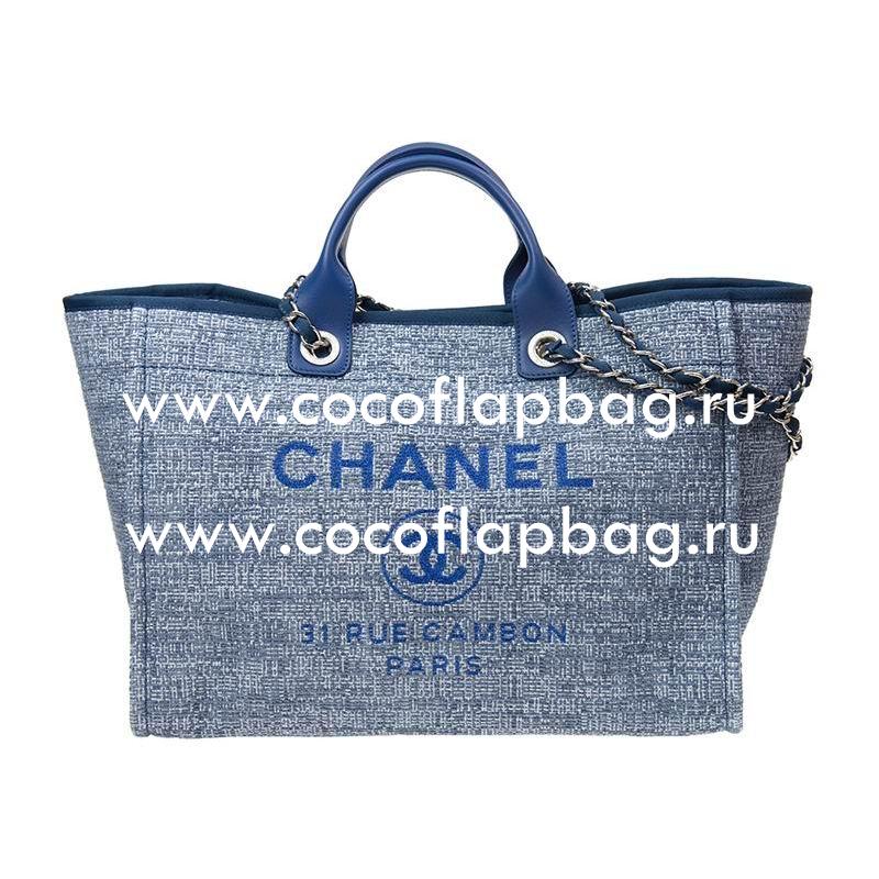 This 7star Replica Chanel Tweed Canvas Deauville Shop Tote Bag Silver Chain A66941CTDBLUE Comes With: authenticity card (with hologram serial number that is the same as the interior serial number), dust bag,and care booklet.