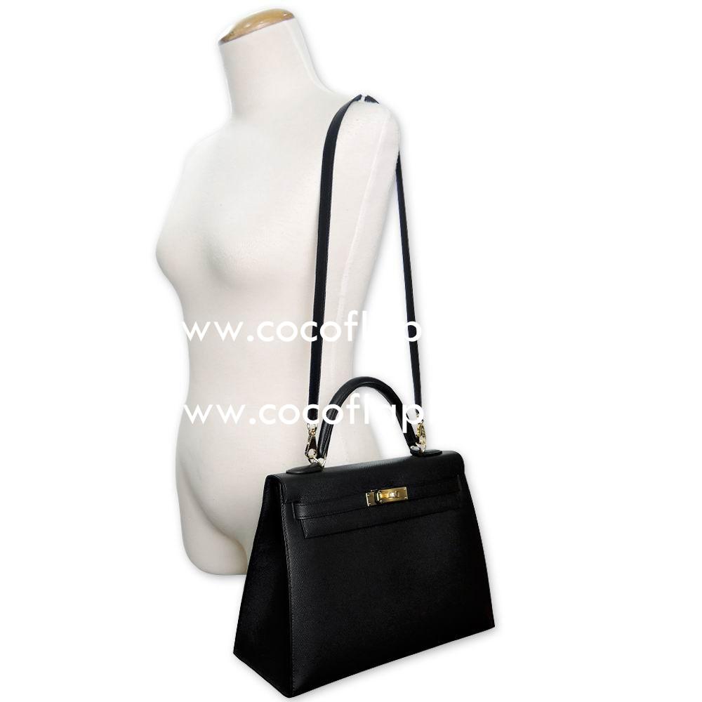 This High Replica Hermes Kelly 32cm Gold Button Epsom Calfskin Hand/Shoulder bag Black H7041911 comes with clochette ,sleepers, care booklet , rain protection , tags and copy of the genuine receipt from an official Hermes store.