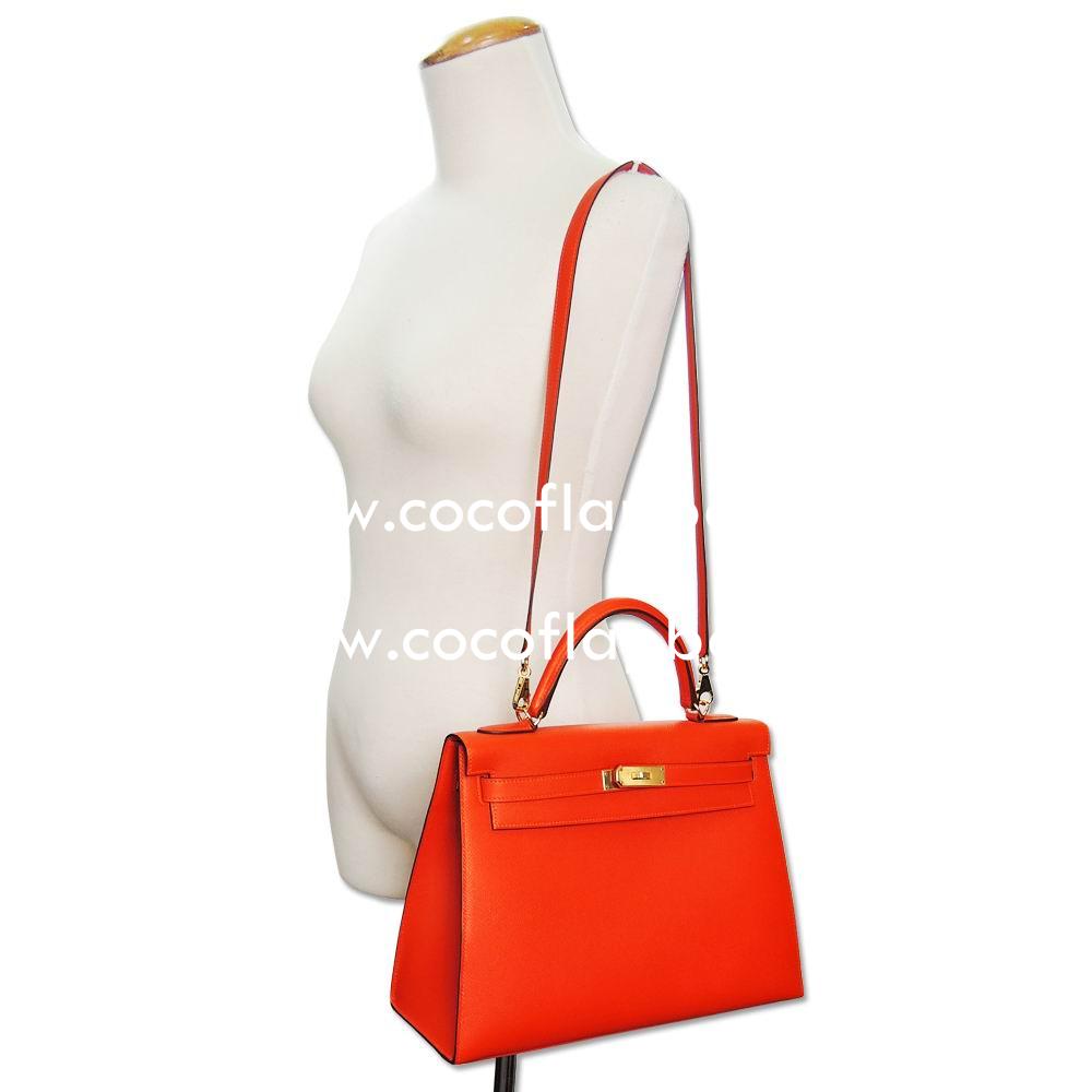This High Replica Hermes Kelly 32cm Gold Button Epsom Calfskin Hand/Shoulder bag Orange H7041912 comes with clochette ,sleepers, care booklet , rain protection , tags and copy of the genuine receipt from an official Hermes store.