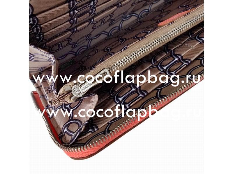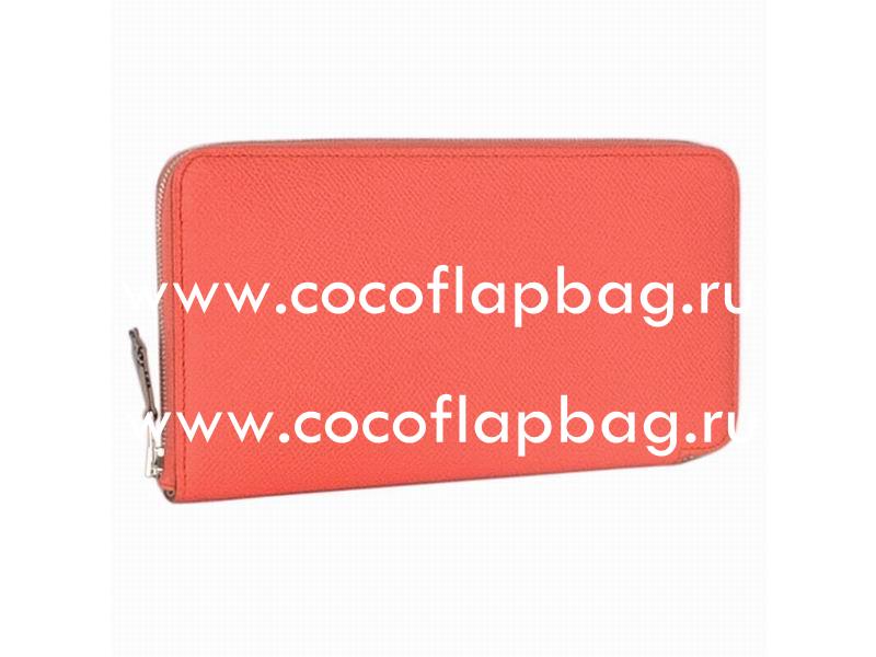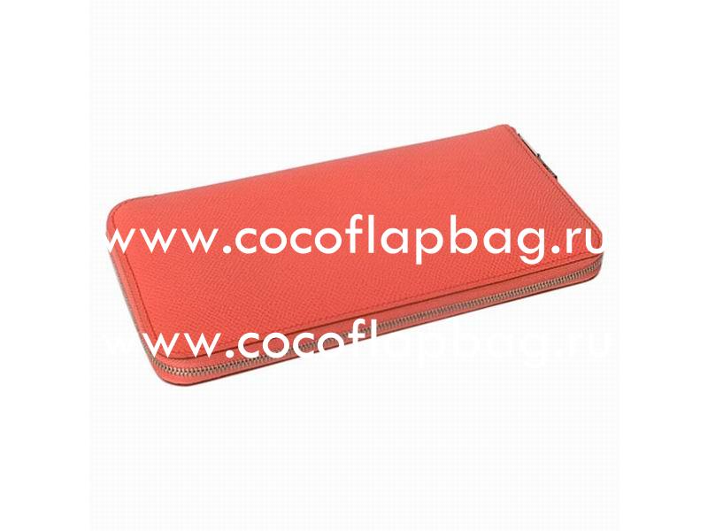- Hermes Azap Epsom Leather Long Wallet Peach Red H49780