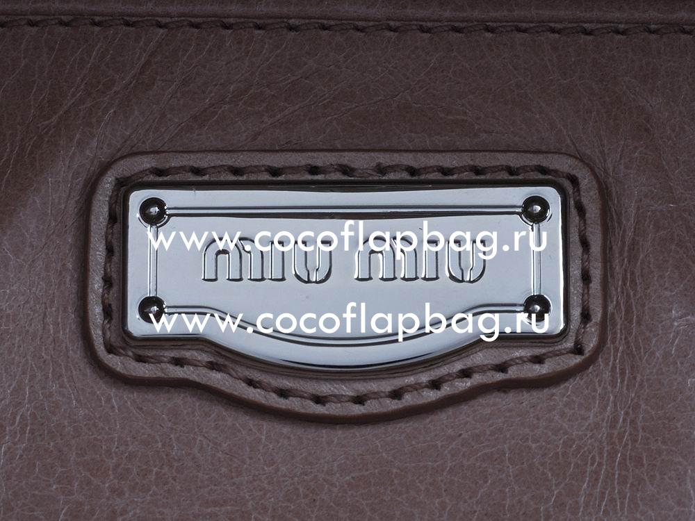 - Miu Miu Glossed Leather Tote Bag In Deep Brown RNB941DB