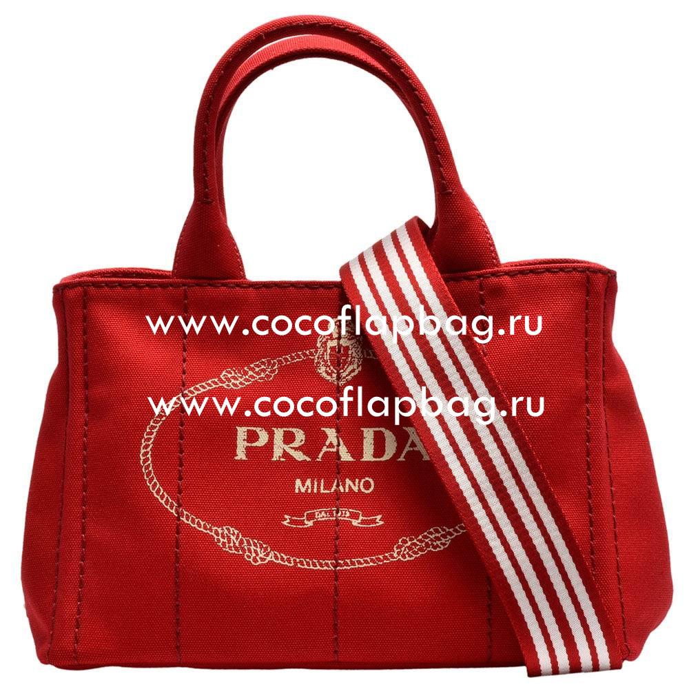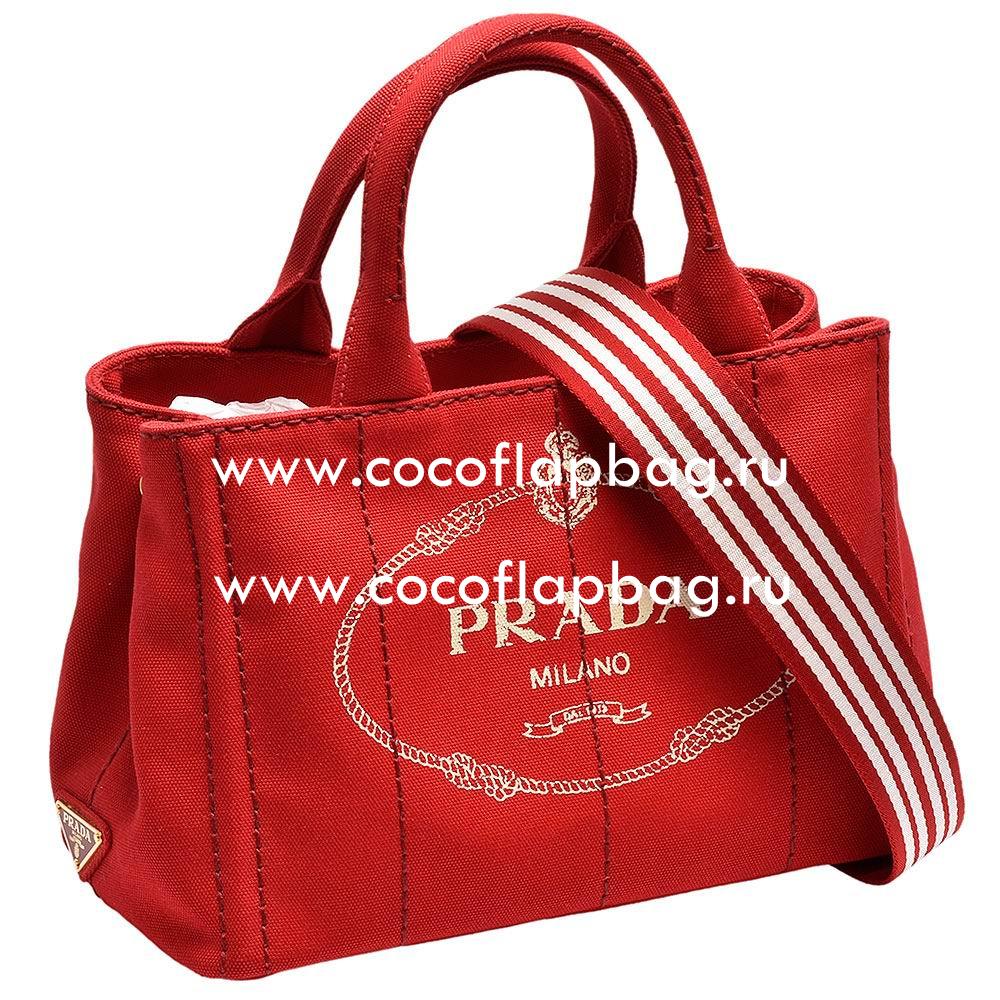 - Prada Canapa Gold Logo Denim Should/Handbag Red PR410098